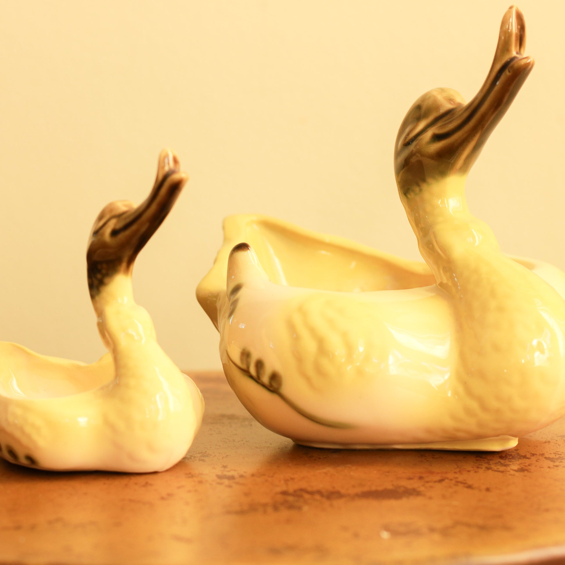 These two chartreuse Hull swan dishes are vibrant statement pieces which could be used for trinkets, candy dish or purely decorative.