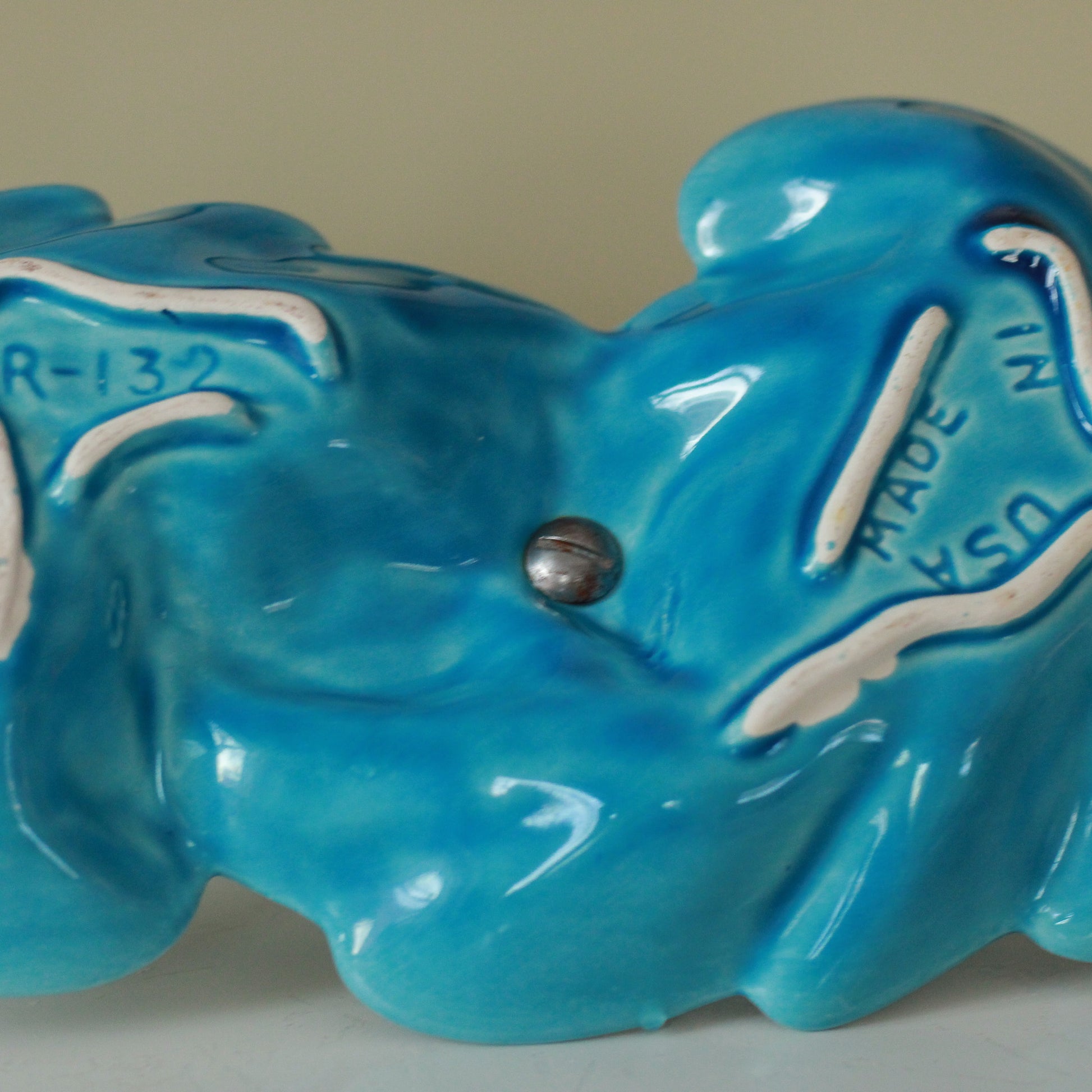 Beautiful vintage MCM turquoise double maple leaf platter with brass ring handle. Marked 132 and in excellent condition.