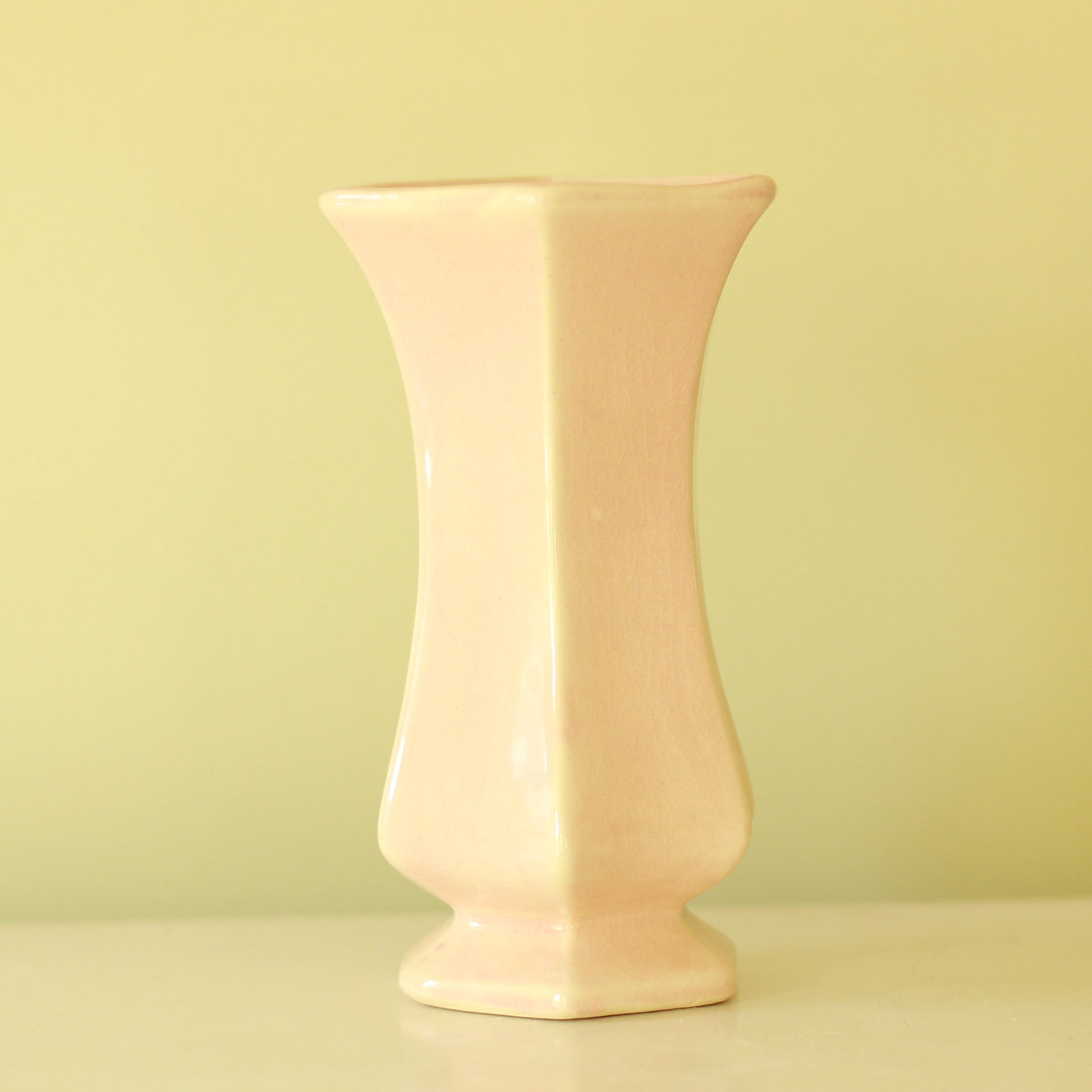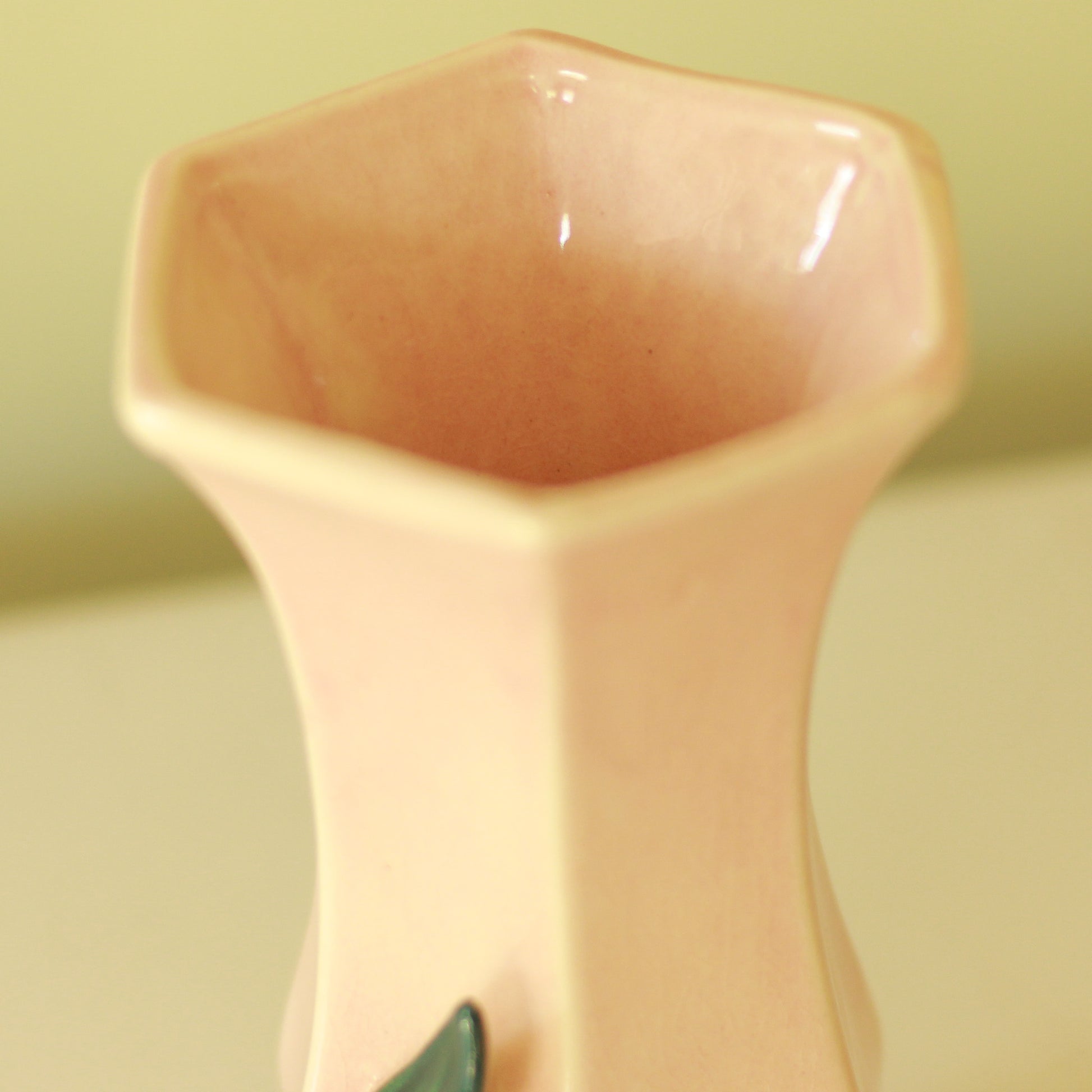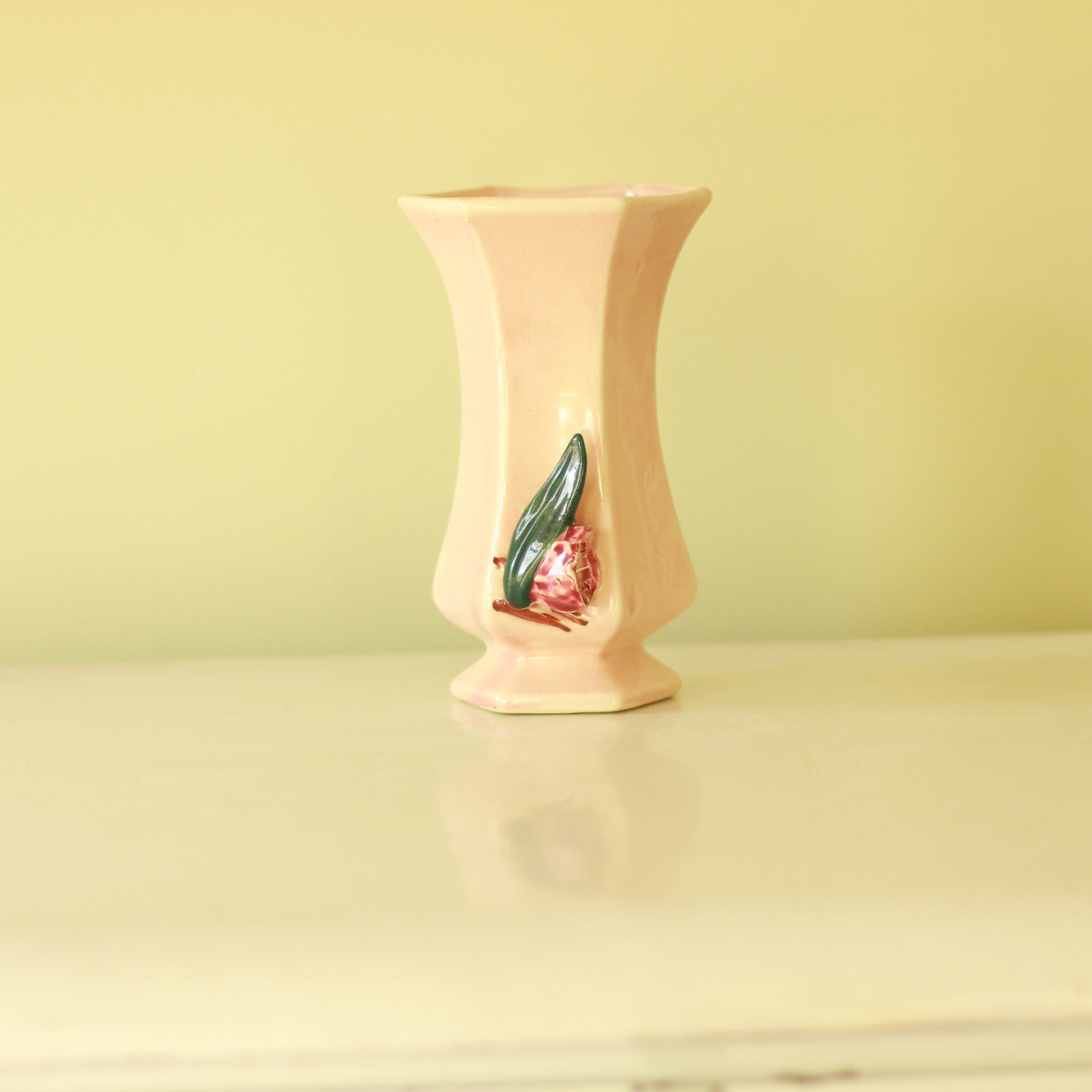 Cute vintage McCoy yellow vase with rose pattern in good condition with some normal wear due to age.