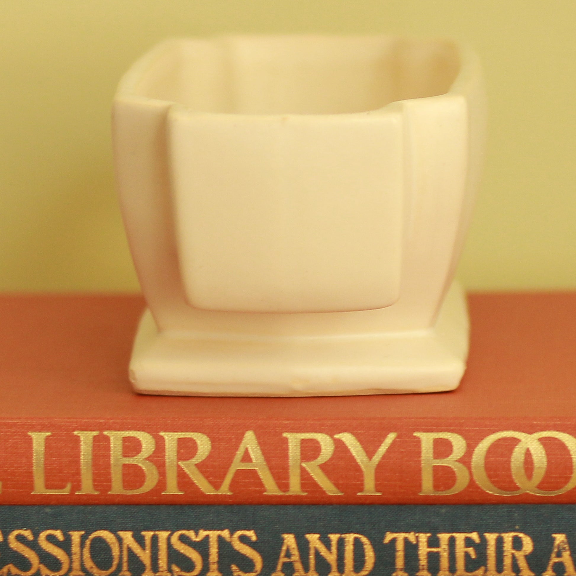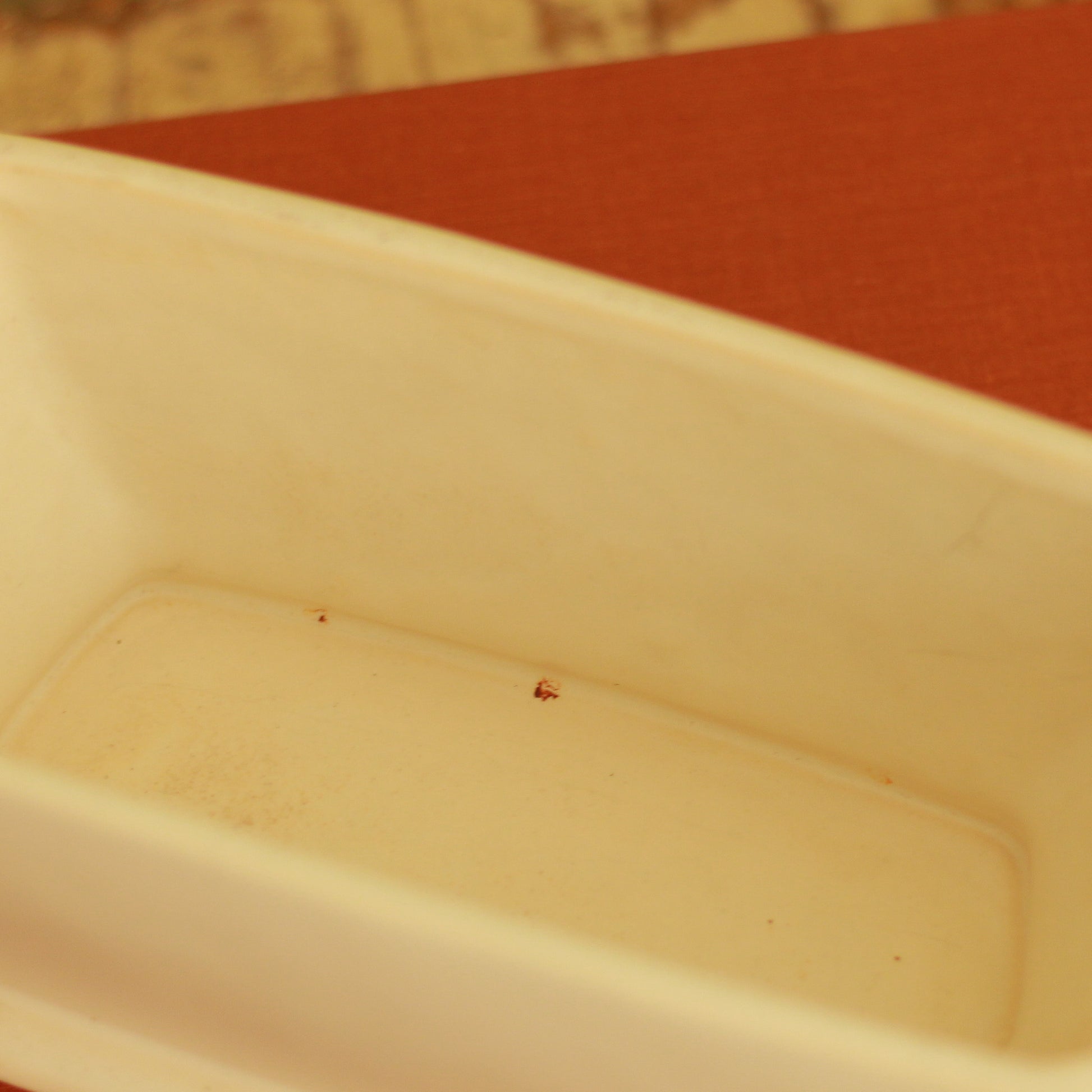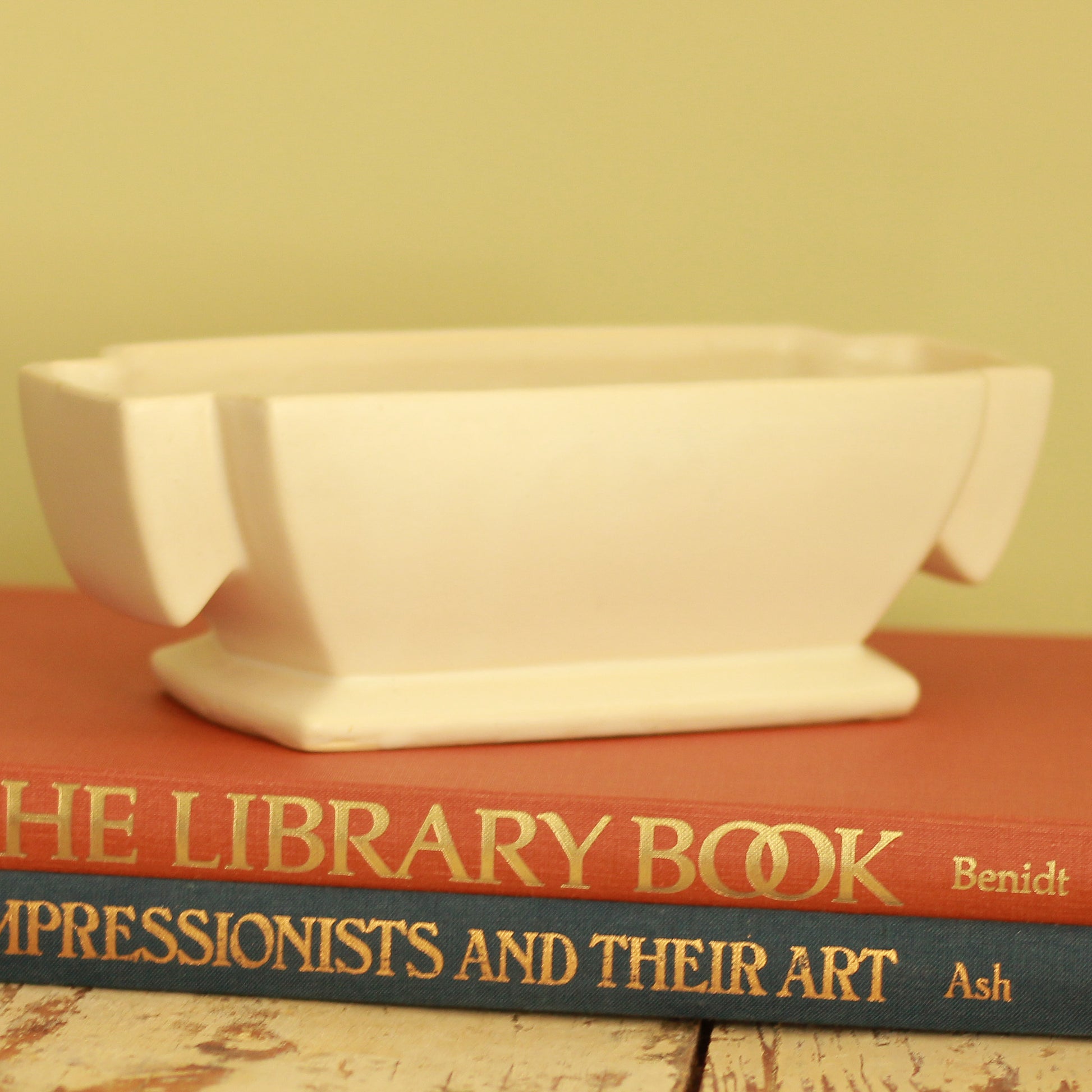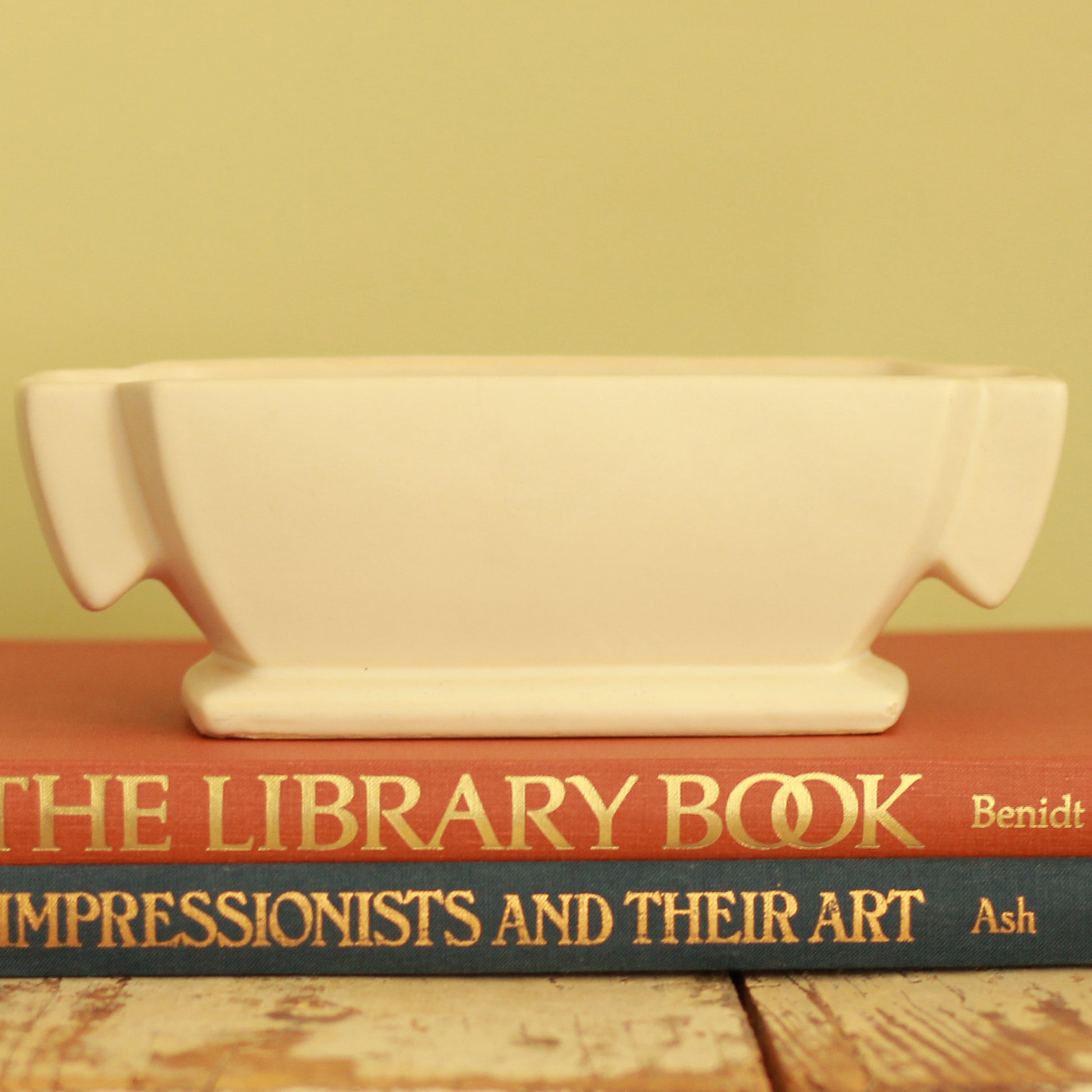 Cute vintage McCoy rectangular, matte white planter, part of the Garden Club line marked McCoy #341. In good condition with some wear and markings due to age.