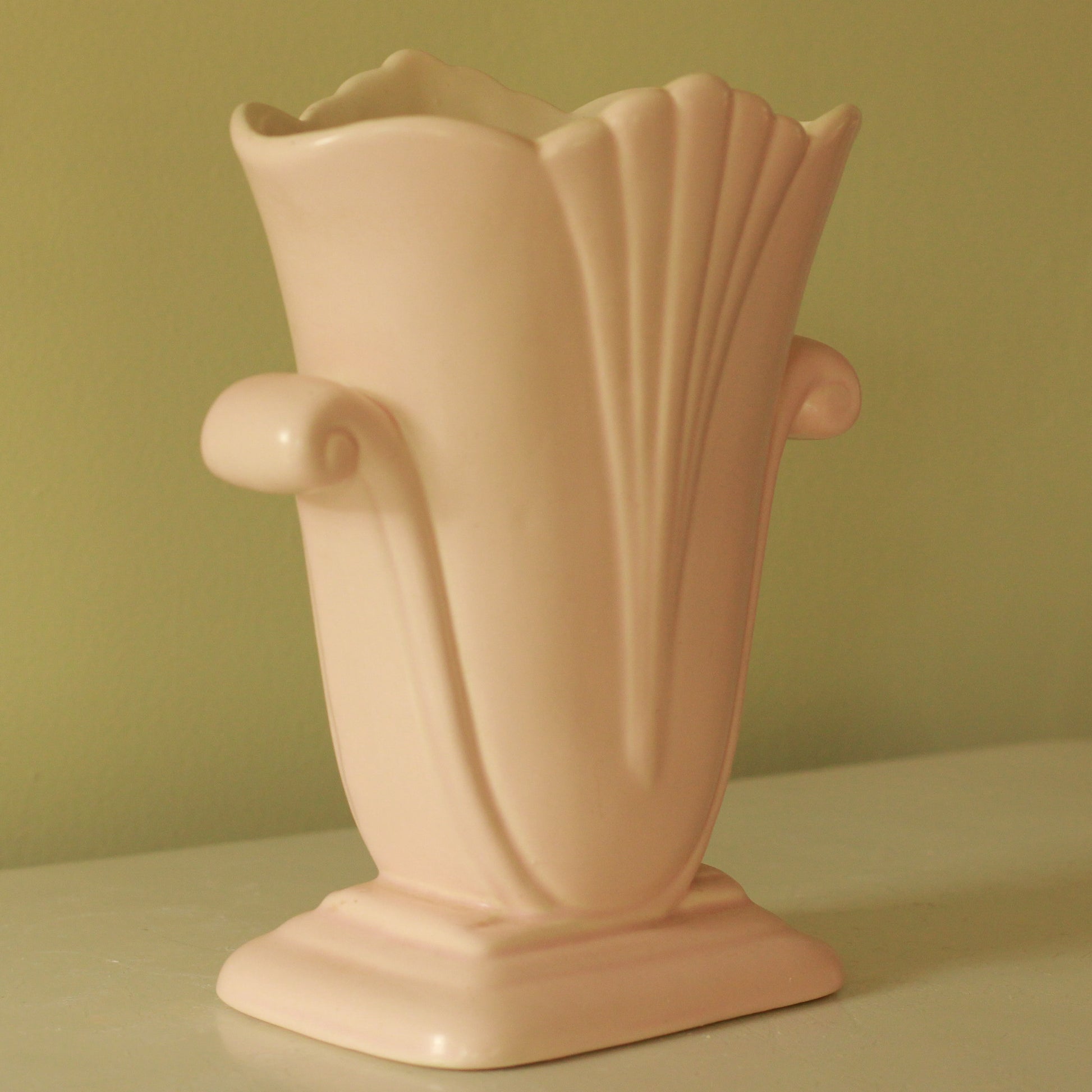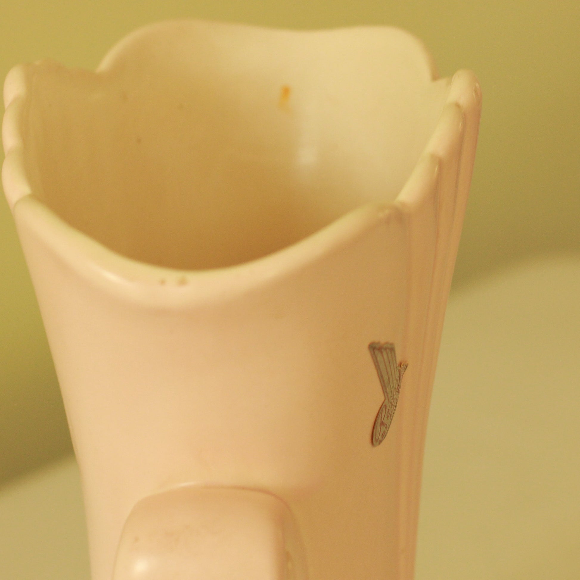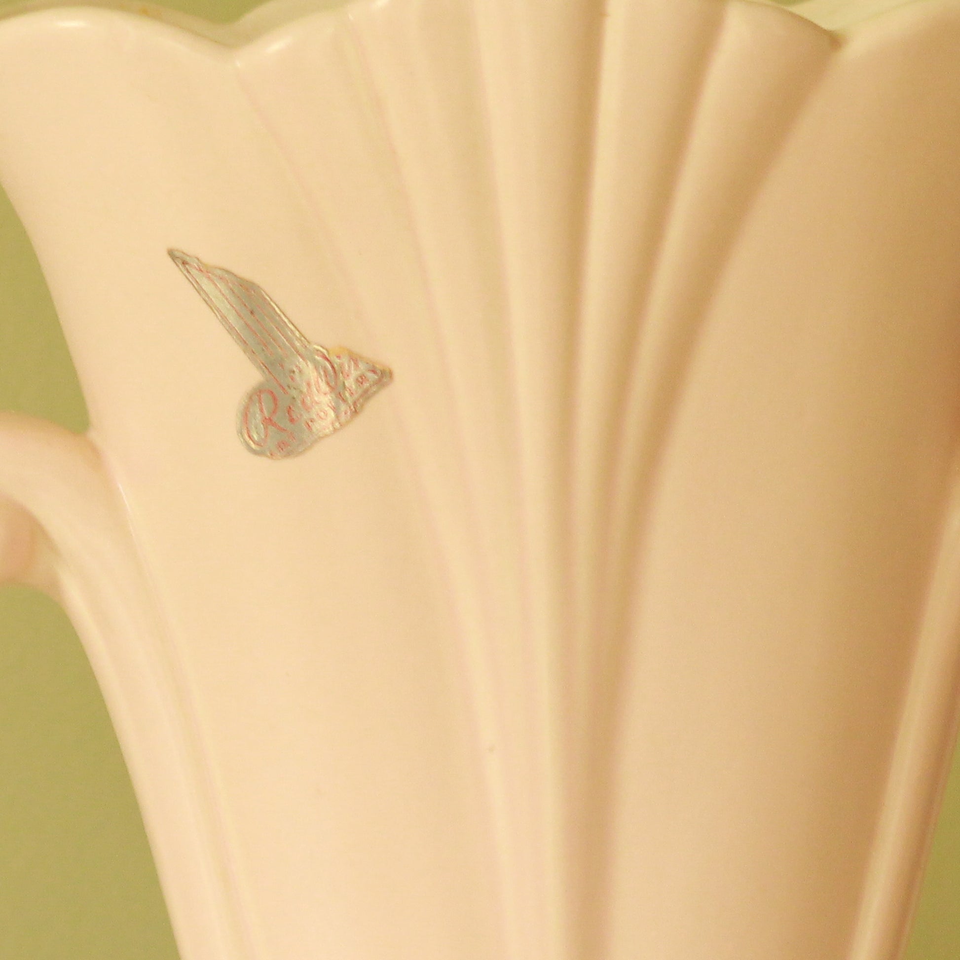 This is an exquisite design with a pink outside coloring and ivory on the inside. There are some markings and crazing due to wear and age.