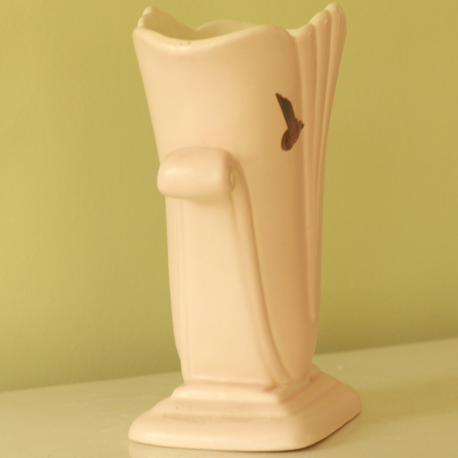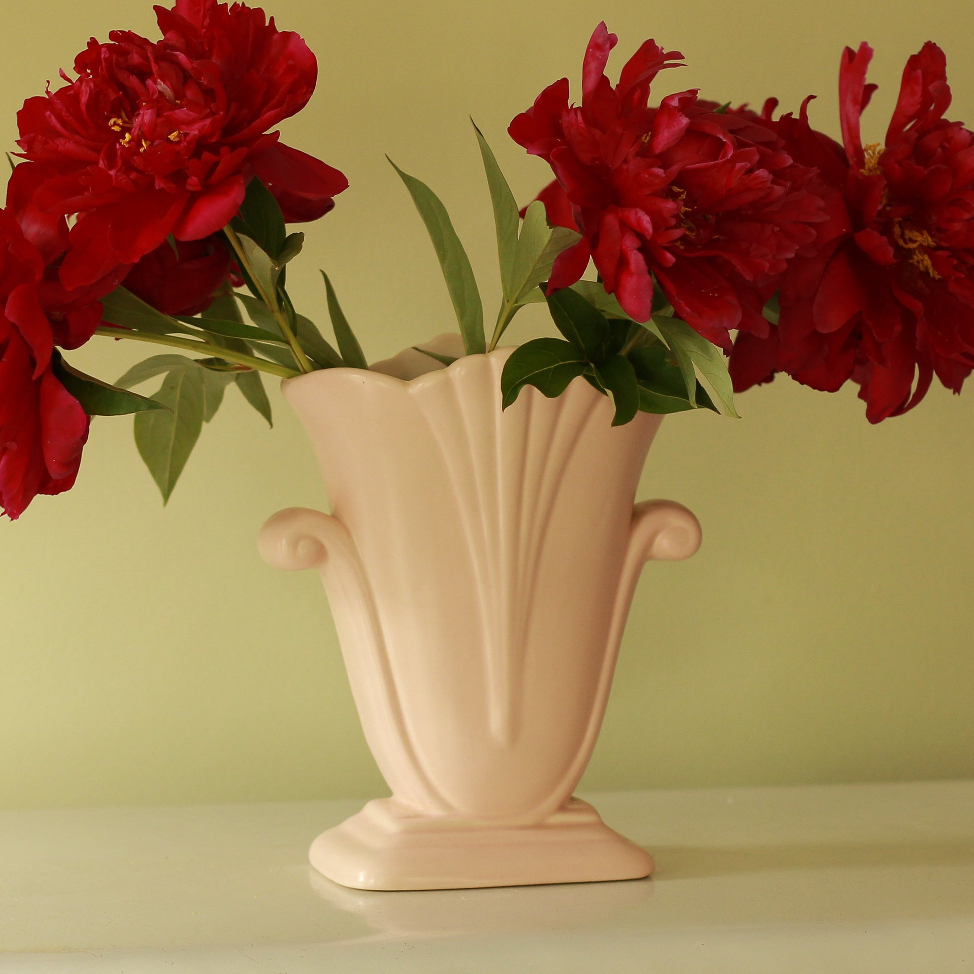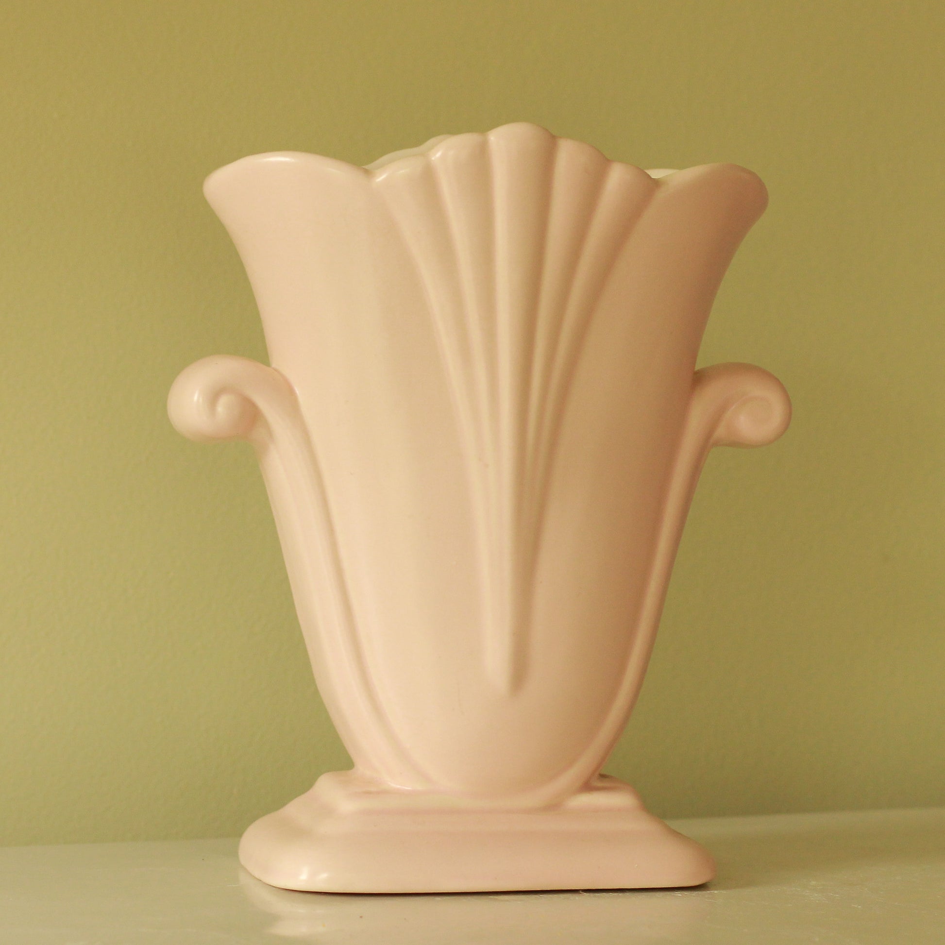 This is an exquisite design with a pink outside coloring and ivory on the inside. There are some markings and crazing due to wear and age.