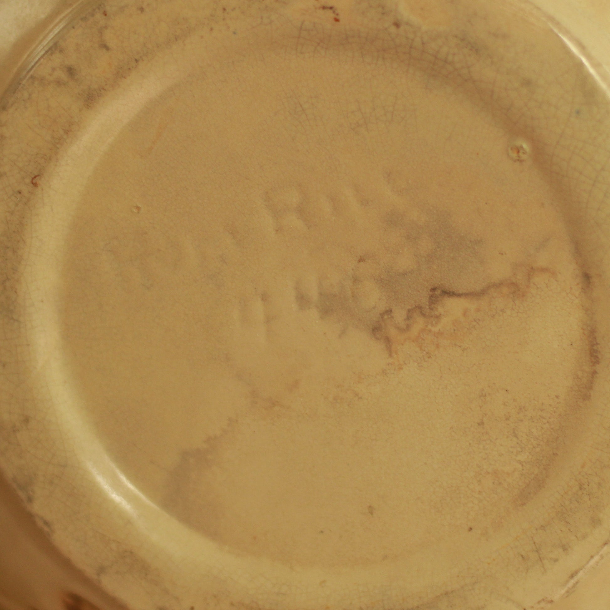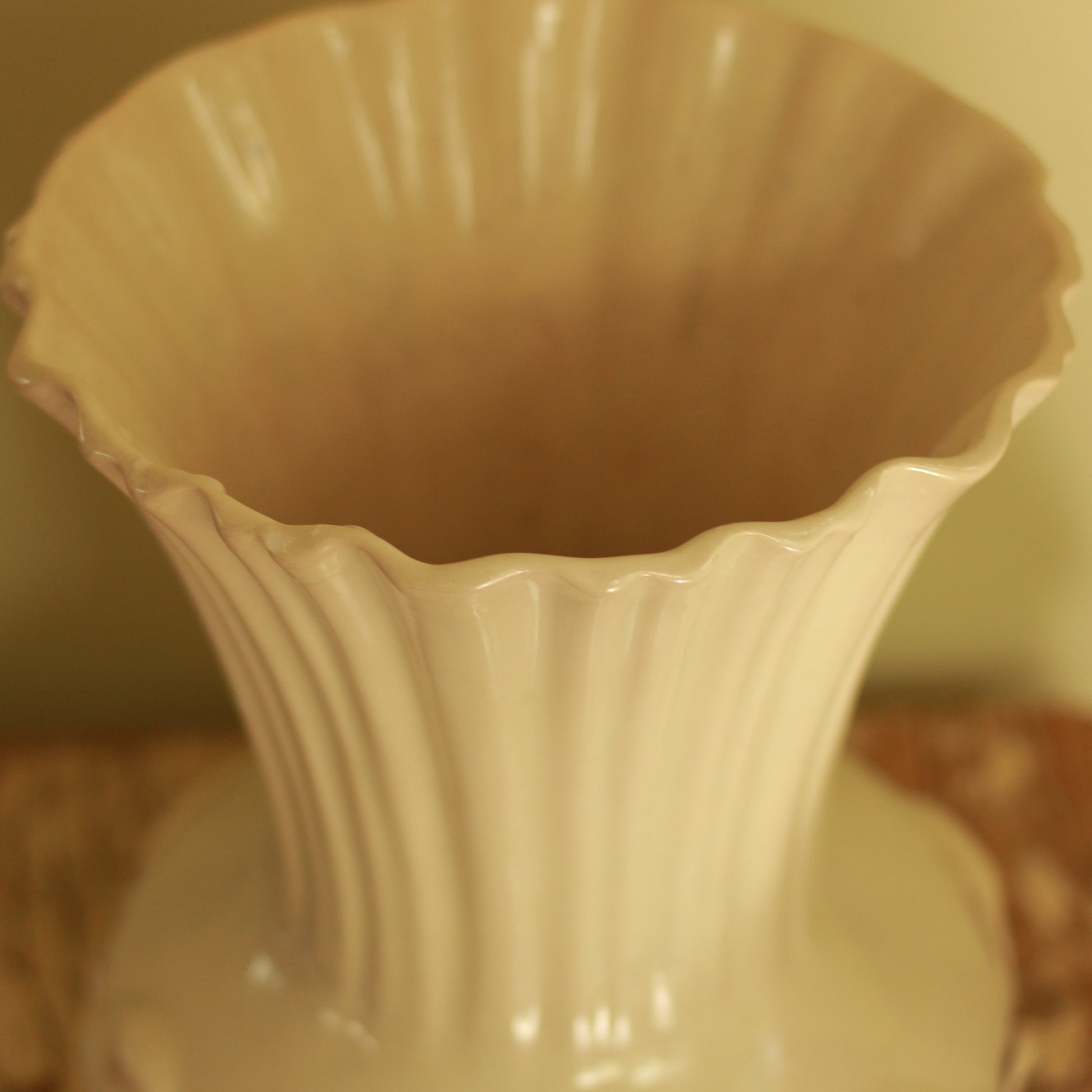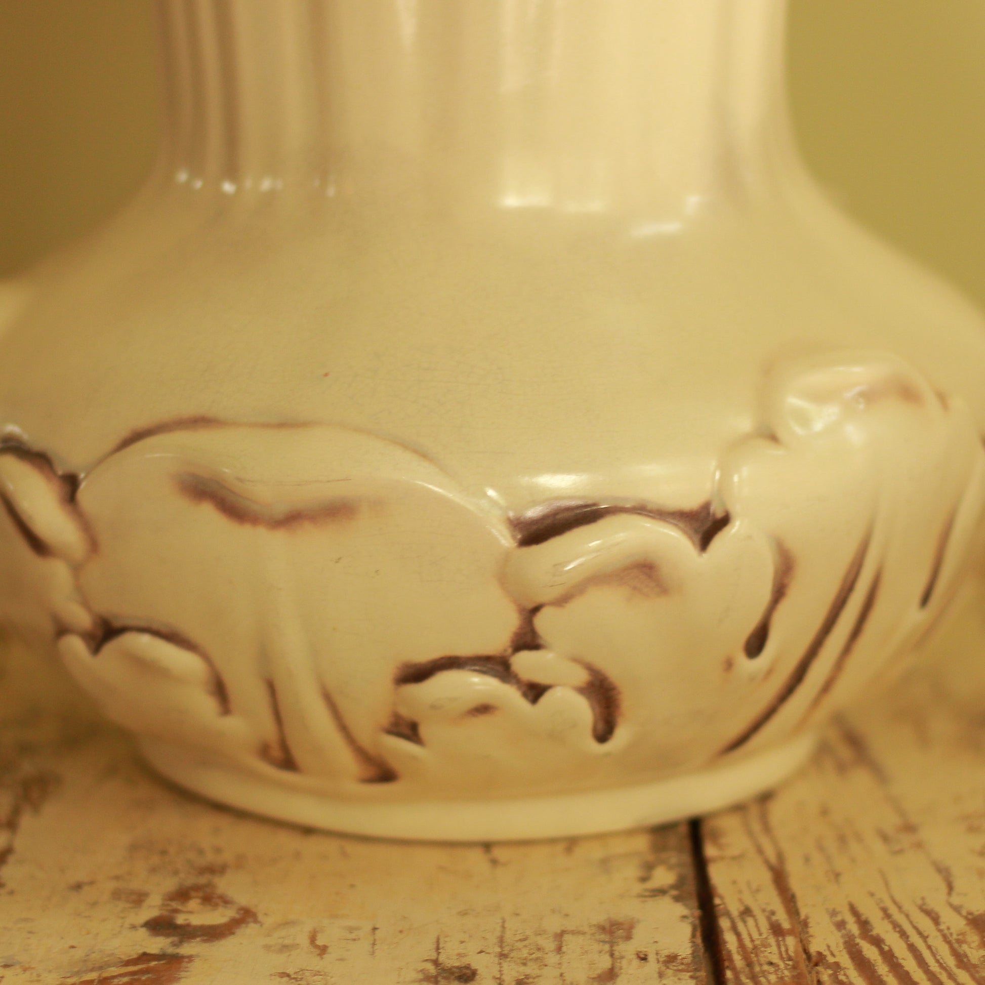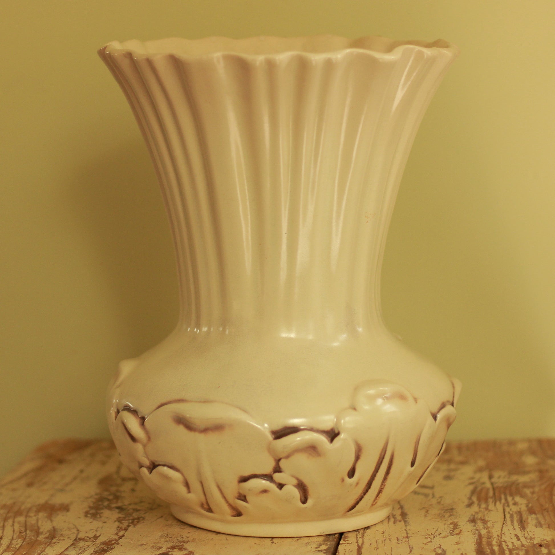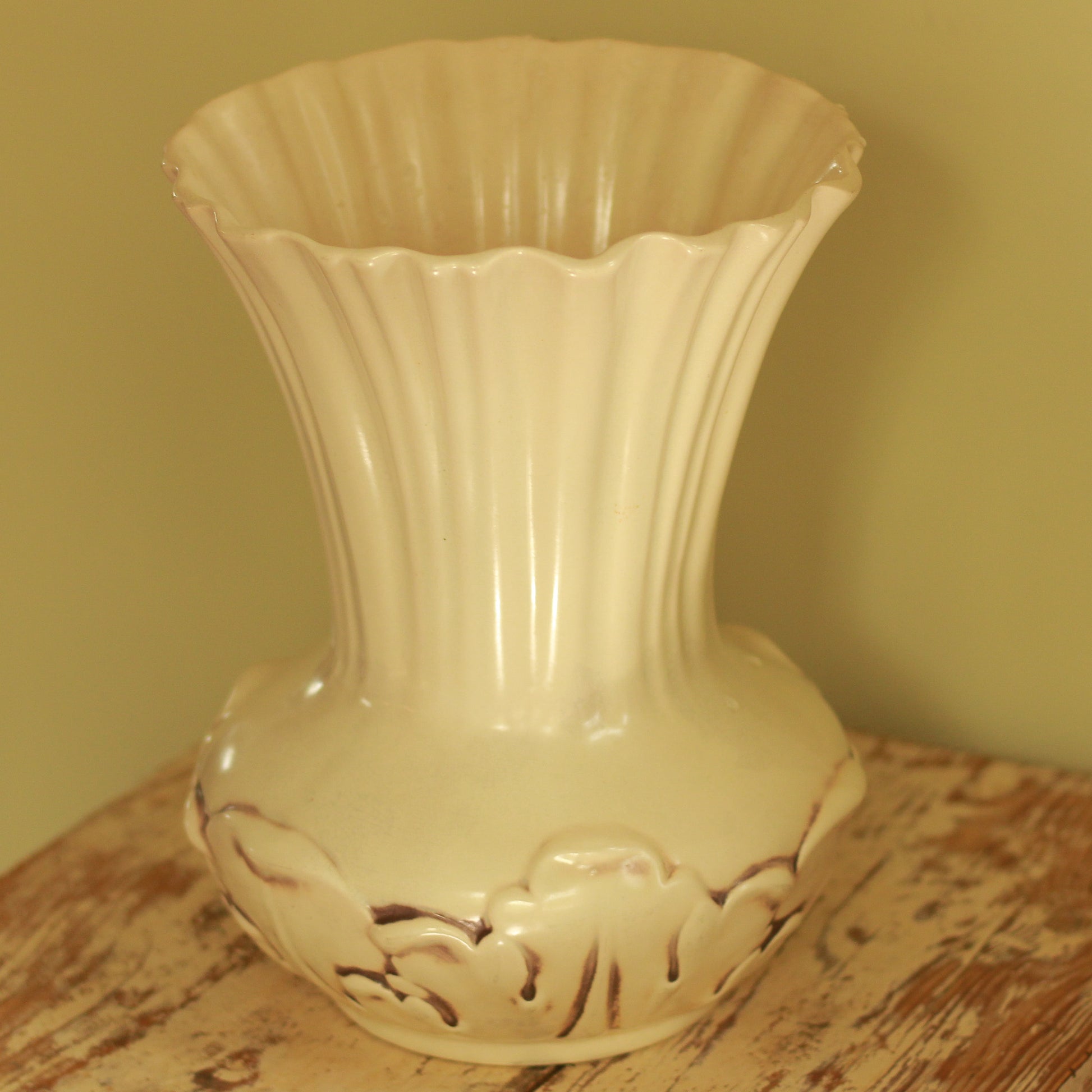 Vintage Rumrill vase with a floral design in ivory with brown accents. In good condition with no chips or cracks but some minor crazing.