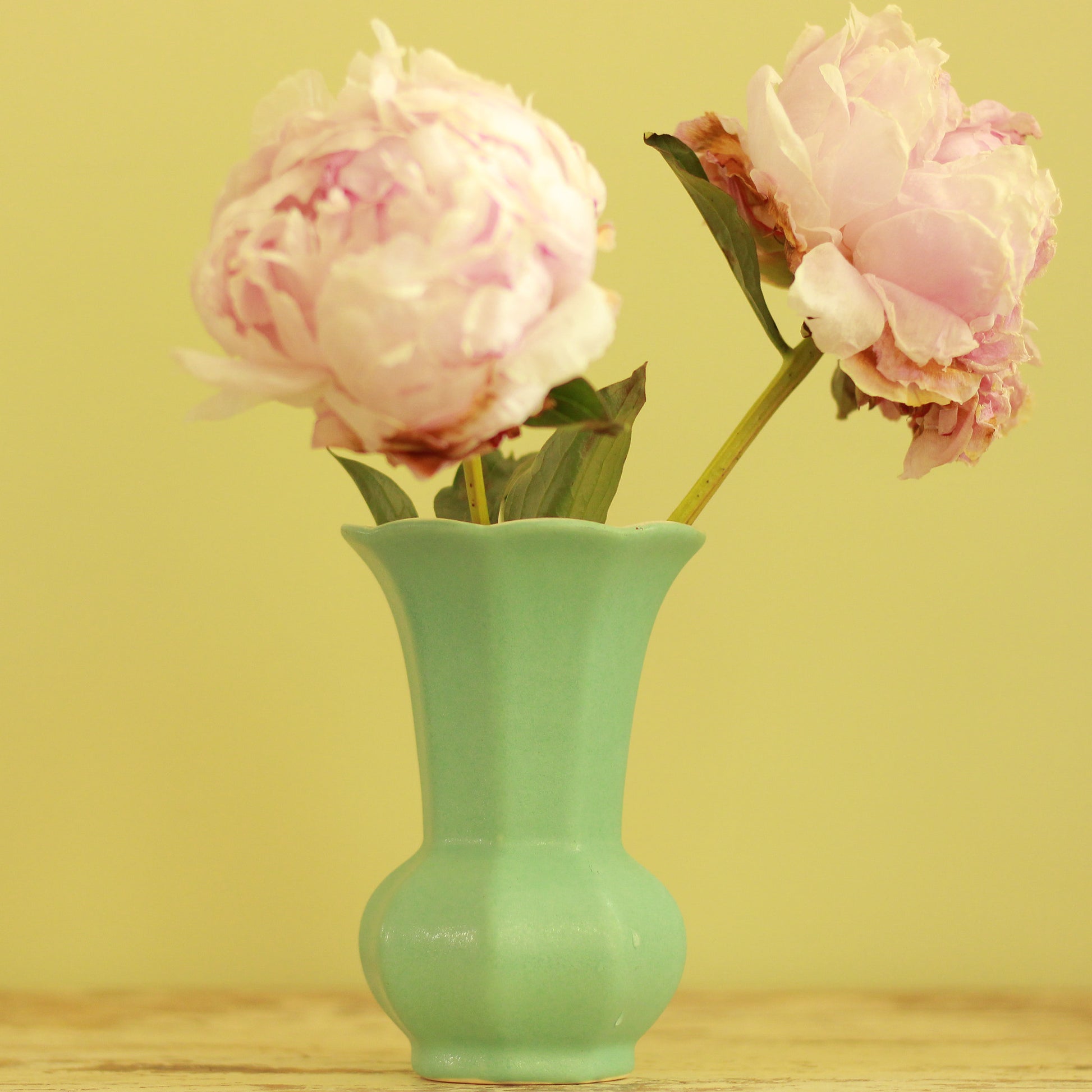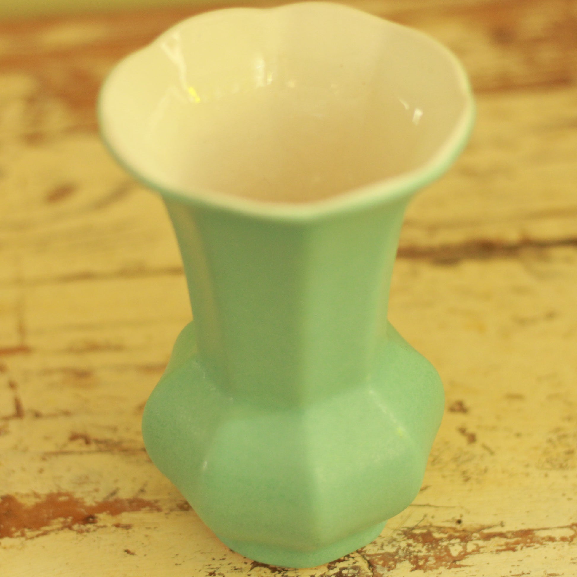Adorable vintage blue vase in great condition with minor markings due to age and wear.